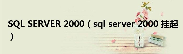 大家好,小问来为大家解答以上问题。SQL SERVER 2000,sql server 2000 挂起这个很多人还不知道,现在让我们一起来看看吧!