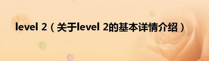 本文关于level 2的基本详情介绍就讲解完毕,希望对大家有所帮助。