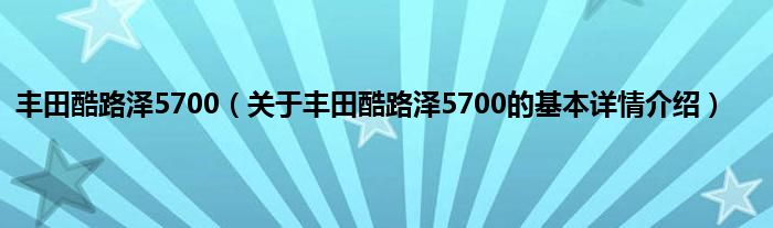 本文关于丰田酷路泽5700的基本详情介绍就讲解完毕,希望对大家有所帮助。