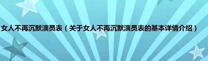 本文关于女人不再沉默演员表的基本详情介绍就讲解完毕,希望对大家有所帮助。