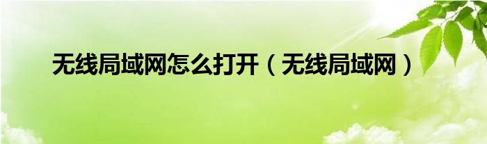 以上就是【无线局域网怎么打开,无线局域网】相关内容。