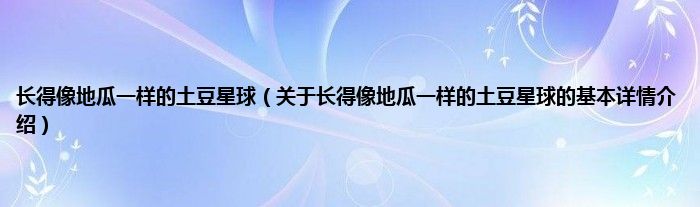 本文关于长得像地瓜一样的土豆星球的基本详情介绍就讲解完毕,希望对大家有所帮助。