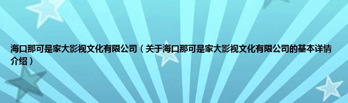 本文关于海口那可是家大影视文化有限公司的基本详情介绍就讲解完毕,希望对大家有所帮助。