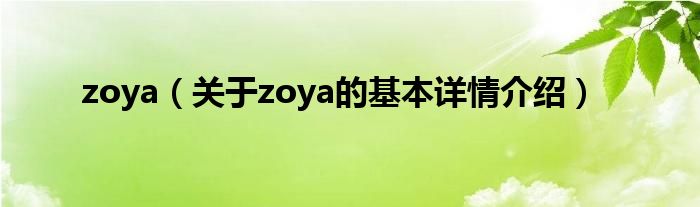 本文关于zoya的基本详情介绍就讲解完毕,希望对大家有所帮助。
