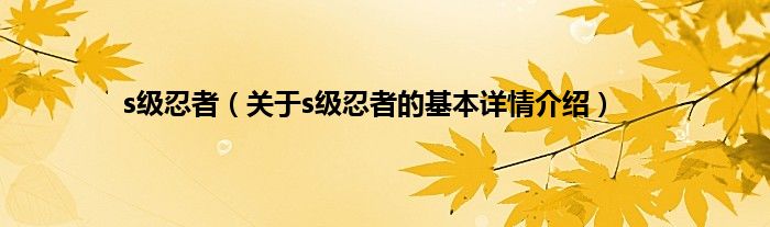 本文关于s级忍者的基本详情介绍就讲解完毕,希望对大家有所帮助。