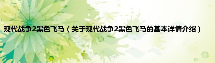 本文关于现代战争2黑色飞马的基本详情介绍就讲解完毕,希望对大家有所帮助。