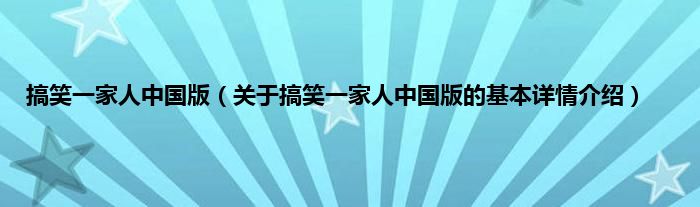本文关于搞笑一家人中国版的基本详情介绍就讲解完毕,希望对大家有所帮助。
