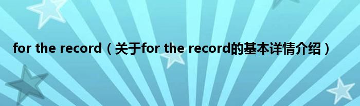 本文关于for the record的基本详情介绍就讲解完毕,希望对大家有所帮助。