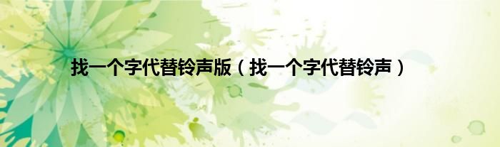 以上就是【找一个字代替铃声版,找一个字代替铃声】相关内容。