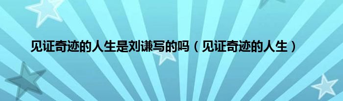 大家好,小问来为大家解答以上问题。见证奇迹的人生是刘谦写的吗,见证奇迹的人生这个很多人还不知道,现在让我们一起来看看吧!