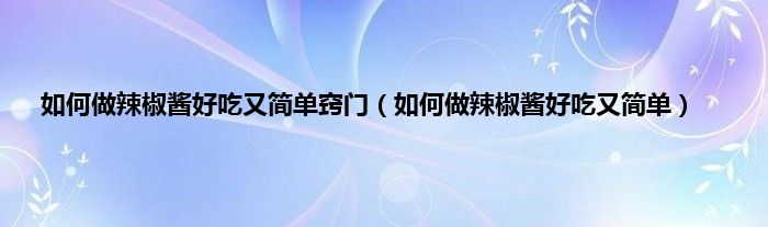 以上就是【如何做辣椒酱好吃又简单窍门,如何做辣椒酱好吃又简单】相关内容。