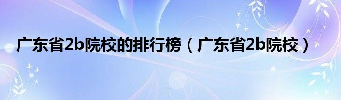 大家好,小问来为大家解答以上问题。广东省2b院校的排行榜,广东省2b院校这个很多人还不知道,现在让我们一起来看看吧!