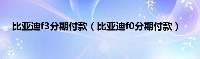 大家好,小问来为大家解答以上问题。比亚迪f3分期付款,比亚迪f0分期付款这个很多人还不知道,现在让我们一起来看看吧!