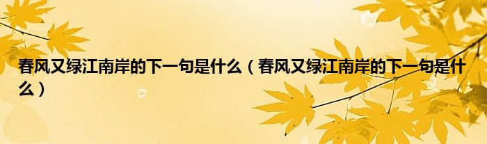 以上就是【春风又绿江南岸的下一句是什么,春风又绿江南岸的下一句是什么】相关内容。