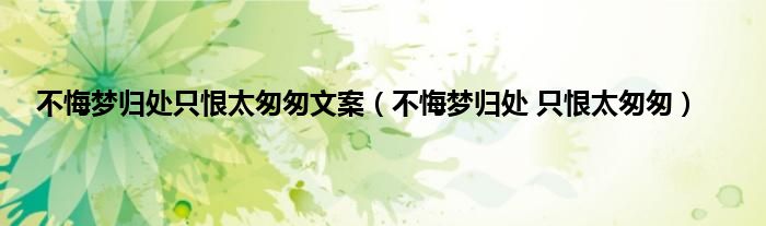 以上就是【不悔梦归处只恨太匆匆文案,不悔梦归处 只恨太匆匆】相关内容。
