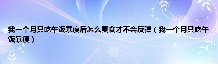 大家好,小问来为大家解答以上问题。我一个月只吃午饭暴瘦后怎么复食才不会反弹,我一个月只吃午饭暴瘦这个很多人还不知道,现在让我们一起来看看吧!