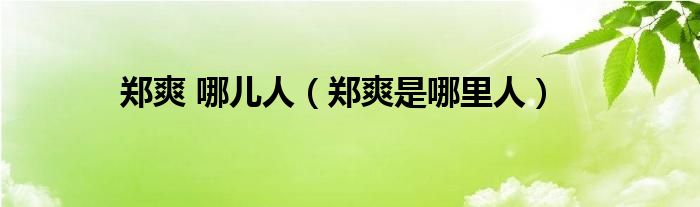 以上就是【郑爽 哪儿人,郑爽是哪里人】相关内容。