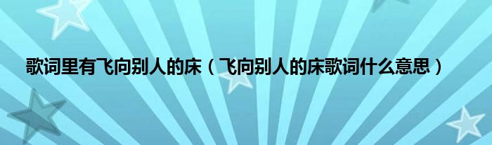 以上就是【歌词里有飞向别人的床,飞向别人的床歌词什么意思】相关内容。