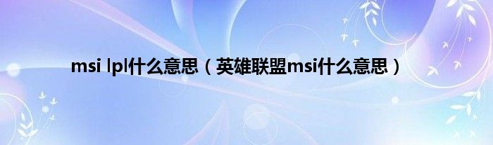 msilpl什么意思(英雄联盟msi什么意思)