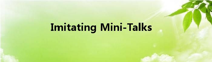 大家好,小问来为大家解答以上问题。Imitating Mini-Talks这个很多人还不知道,现在让我们一起来看看吧!