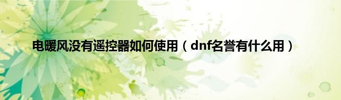 大家好,小问来为大家解答以上问题。电暖风没有遥控器如何使用,dnf名誉有什么用这个很多人还不知道,现在让我们一起来看看吧!