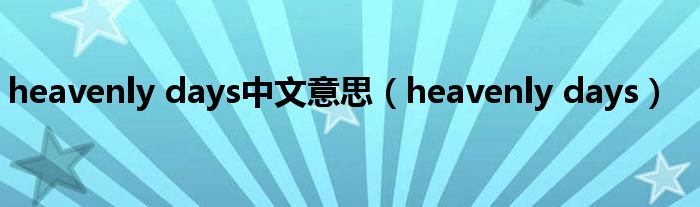 以上就是【heavenly days中文意思,heavenly days】相关内容。