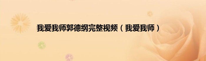 以上就是【我爱我师郭德纲完整视频,我爱我师】相关内容。