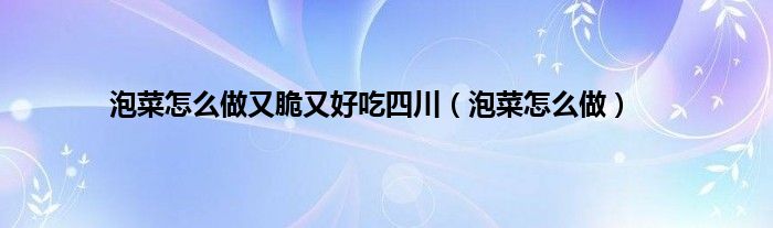 以上就是【泡菜怎么做又脆又好吃四川,泡菜怎么做】相关内容。