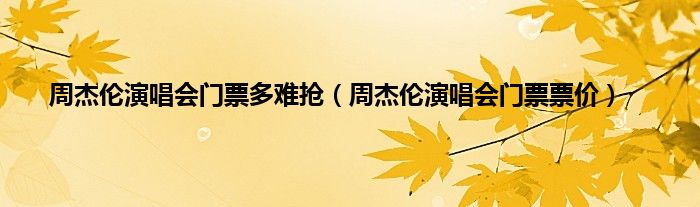 以上就是【周杰伦演唱会门票多难抢,周杰伦演唱会门票票价】相关内容。
