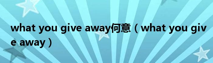 以上就是【what you give away何意,what you give away】相关内容。