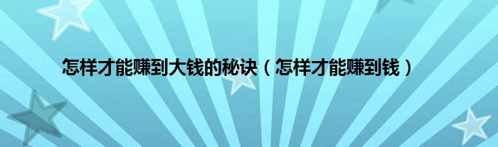 以上就是【怎样才能赚到大钱的秘诀,怎样才能赚到钱】相关内容。