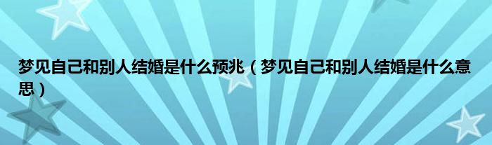 本文梦见自己和别人结婚是什么预兆,梦见自己和别人结婚是什么意思到此分享完毕,希望对大家有所帮助。