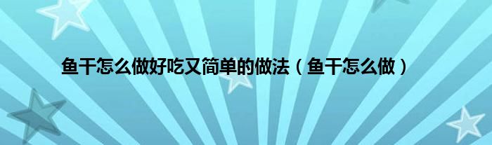 以上就是【鱼干怎么做好吃又简单的做法,鱼干怎么做】相关内容。