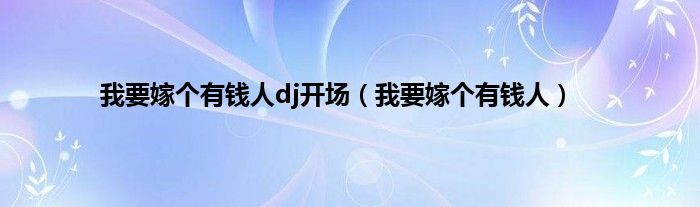 大家好,小问来为大家解答以上问题。我要嫁个有钱人dj开场,我要嫁个有钱人这个很多人还不知道,现在让我们一起来看看吧!