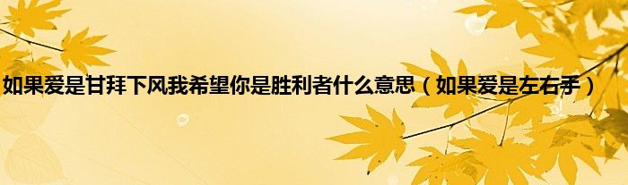 以上就是【如果爱是甘拜下风我希望你是胜利者什么意思,如果爱是左右手】相关内容。
