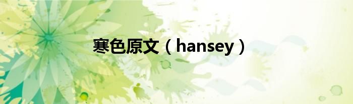 大家好,小问来为大家解答以上问题。寒色原文,hansey这个很多人还不知道,现在让我们一起来看看吧!