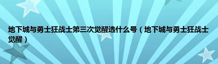 大家好,小问来为大家解答以上问题。地下城与勇士狂战士第三次觉醒选什么号,地下城与勇士狂战士觉醒这个很多人还不知道,现在让我们一起来看看吧!
