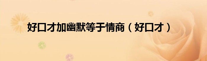 大家好,小问来为大家解答以上问题。好口才加幽默等于情商,好口才这个很多人还不知道,现在让我们一起来看看吧!