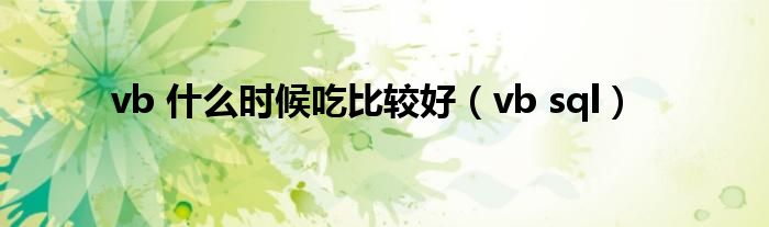 大家好,小问来为大家解答以上问题。vb 什么时候吃比较好,vb sql这个很多人还不知道,现在让我们一起来看看吧!