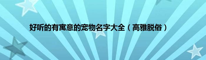 大家好,综合小编来为大家讲解下。好听的有寓意的宠物名字大全,高雅脱俗这个很多人还不知道,现在让我们一起来看看吧!
