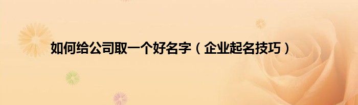 大家好,综合小编来为大家讲解下。如何给公司取一个好名字,企业起名技巧这个很多人还不知道,现在让我们一起来看看吧!