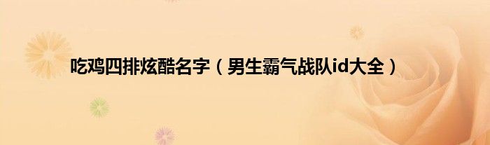 大家好,综合小编来为大家讲解下。吃鸡四排炫酷名字,男生霸气战队id大全这个很多人还不知道,现在让我们一起来看看吧!