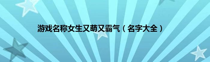 大家好,综合小编来为大家讲解下。游戏名称女生又萌又霸气,名字大全这个很多人还不知道,现在让我们一起来看看吧!
