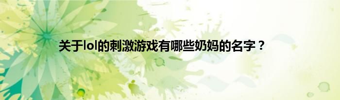 本文关于lol的刺激游戏有哪些奶妈的名字?到此分享完毕,希望对大家有所帮助。