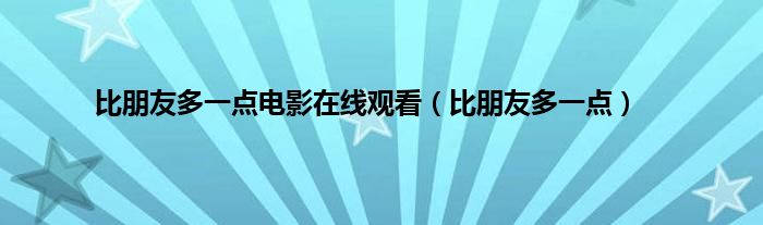大家好,小问来为大家解答以上问题。比朋友多一点电影在线观看,比朋友多一点这个很多人还不知道,现在让我们一起来看看吧!