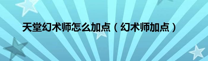 大家好,小问来为大家解答以上问题。天堂幻术师怎么加点,幻术师加点这个很多人还不知道,现在让我们一起来看看吧!