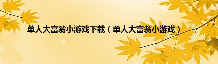 大家好,小问来为大家解答以上问题。单人大富翁小游戏下载,单人大富翁小游戏这个很多人还不知道,现在让我们一起来看看吧!