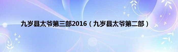 以上就是【九岁县太爷第三部2016,九岁县太爷第二部】相关内容。