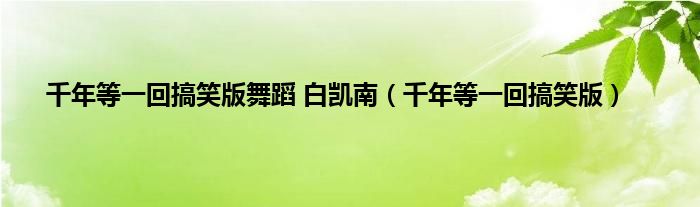 以上就是【千年等一回搞笑版舞蹈 白凯南,千年等一回搞笑版】相关内容。