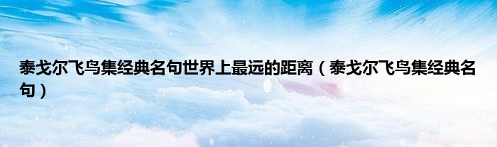 以上就是【泰戈尔飞鸟集经典名句世界上最远的距离,泰戈尔飞鸟集经典名句】相关内容。